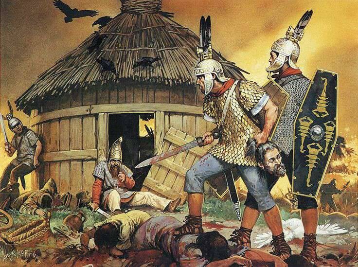 Римляне нападают на посёлок варваров